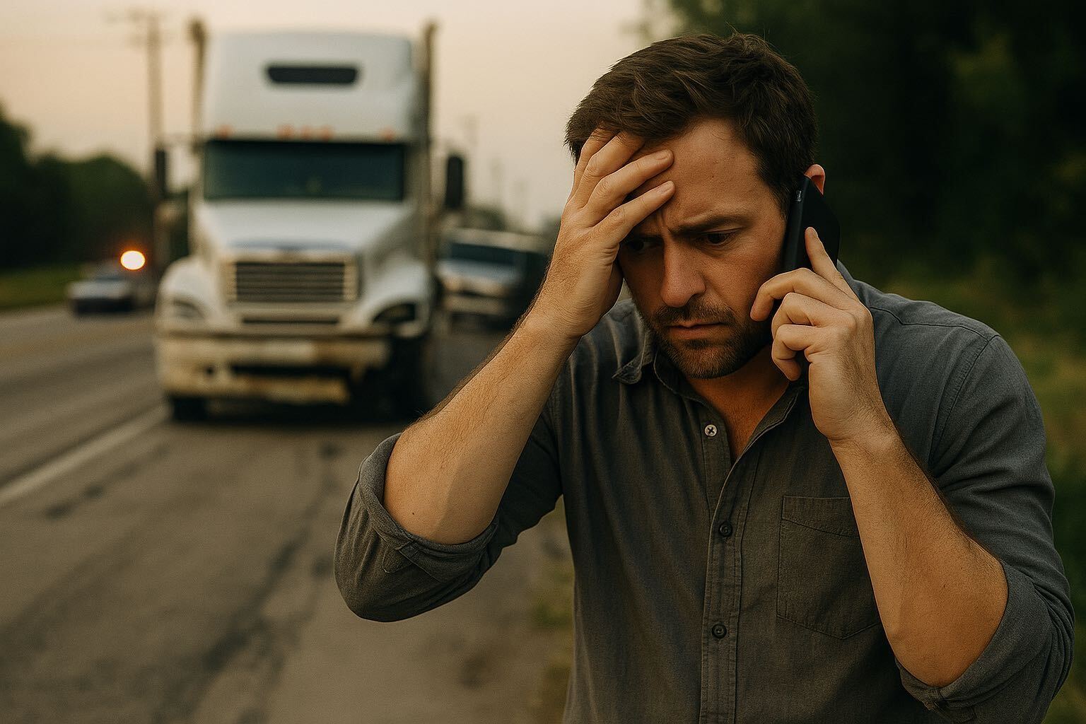 Keep copies of your police report, photos, and medical bills. If possible, note the company name and any vehicle or trailer identification numbers.
